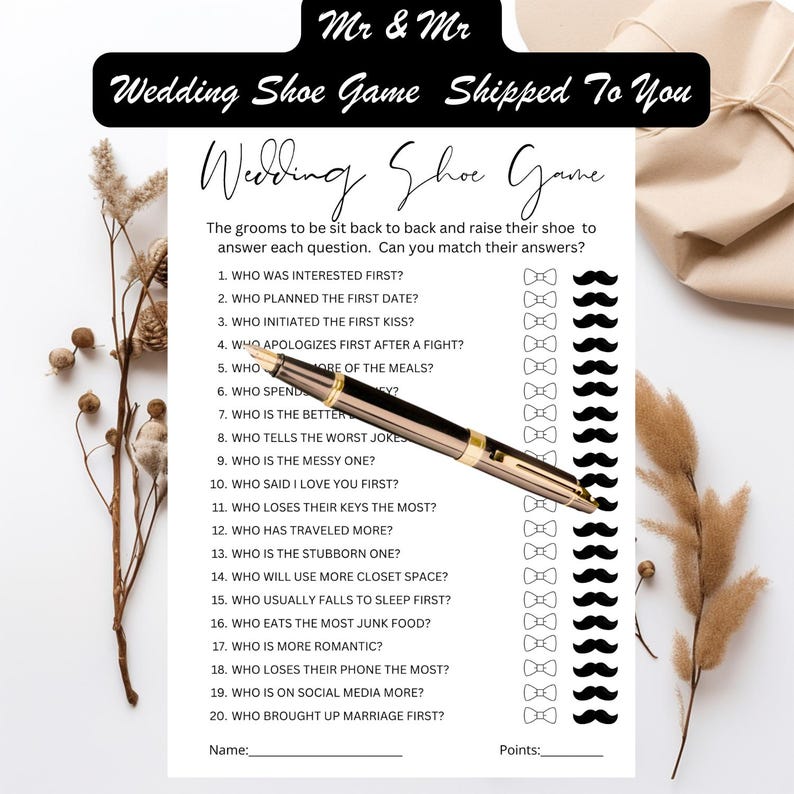Mr and Mr Wedding Shoe Game, PRINTED + SHIPPED Groom Or Groom Bachelor Party Game, Two Grooms Guess Who Game, Gay Bachelor Party Game Cards